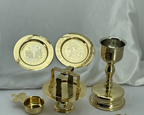 Це блюдо призначене для використання під час богослужінь, зокрема для здійснення Таїнства Євхаристії. Виготовлене з високоякісної латуні та покрите шаром позолоти, що надає виробу благородного вигляду та забезпечує довговічність.