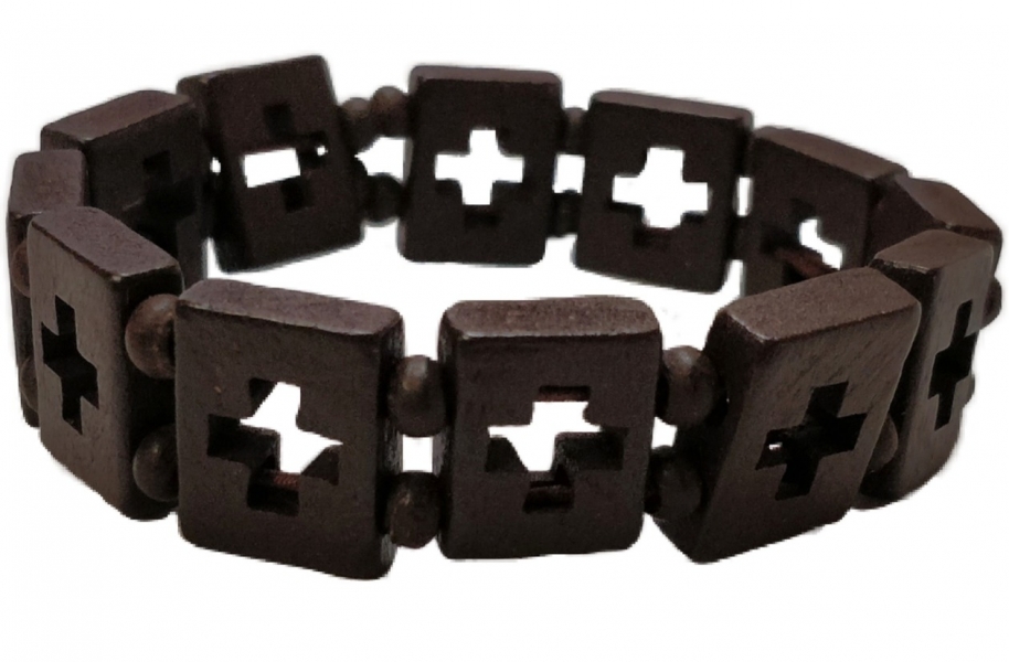 Цей браслет-чотки виготовлений з натурального дерева з вирізаними хрестами, що надає йому особливого символічного значення. Всі елементи браслета покриті лаком, який забезпечує захист від вологи та стирання, зберігаючи його первозданний вигляд.