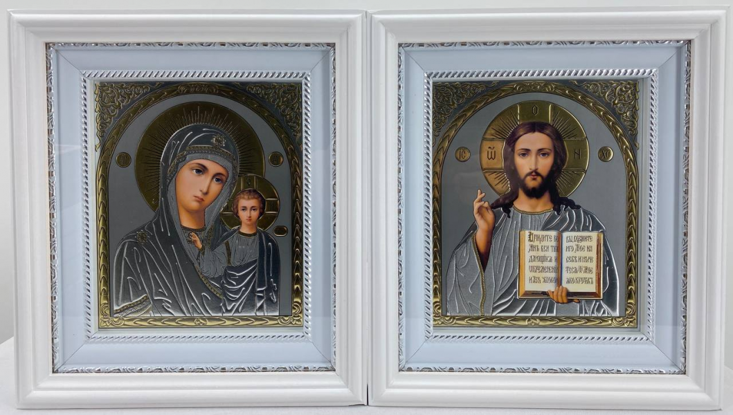 Ікони "Вінчальна пара" (літ. сіра, рам. біл., пр.) 26х23см