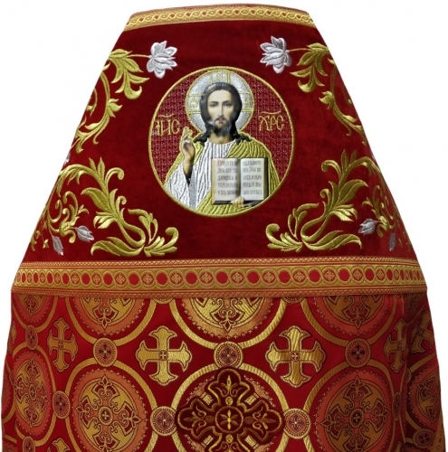 Облачення священника комбіноване, основа з якісної парчевої тканини вітчизняного виробництва з подвійною металізацією, верх-вишитий золотою і срібною ниткою на бархаті виробництва Італії, декоровано вишитими хрестами, галуном та бахрамою. В комплект входить: фелон, єпітрахіль, поручі, палиця, набедренник, пояс та воздух з покровцями.