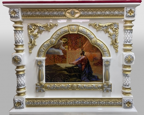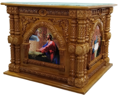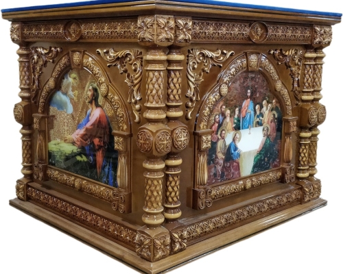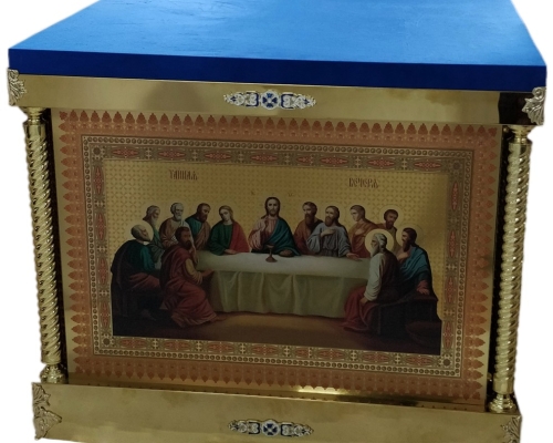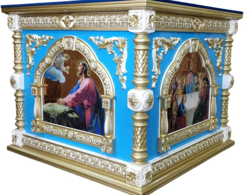 Золото/серебро синий Облачение на внутренний престол 1.3х1.3-63800 грн 1.2х1.2-55500 грн 1.15х1.15-54550 грн 1.1х1.1-53600 грн 1х1-51500грн 0.9х0.9-49400грн Литевые иконы. Кручёные стойки, икона покрыта булатом и вскрыта авиационным лаком