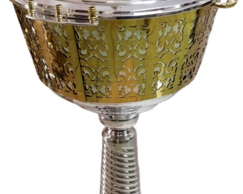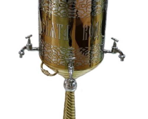 Купіль для хрещення матеріал латунь та алюміній, висота до миски 92см, висота з свічником 113 см
