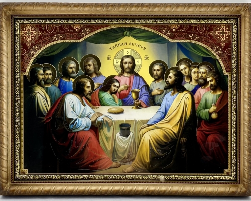 Икона Вход Господень в Иерусалим на деревянной основе имеет фигурную форму в виде косички, подрамник из пластика с напылением золотистой краски, литография имеет тиснение на бумаге.