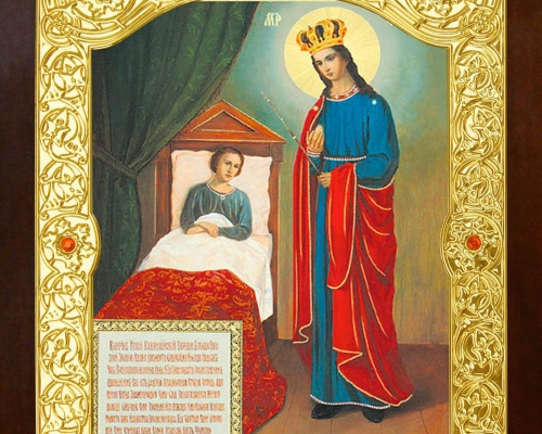 Икона Богородицы: "Невыпиваемая чаша" рамка изготовлена из высококачественного деревянного основания. Оклад иконы выполнен из пластика с орнаментом, также оклад украшен красными камешками. Печать литографии на бумаге, это позволяет передать детали изображения с большой точностью и яркостью.