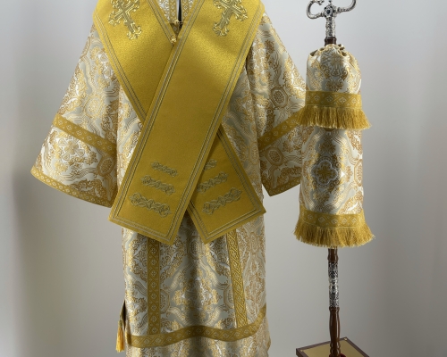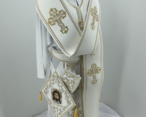 Тканина: натуральний, турецький оксамит, молочного кольору. Металонитками вишиті візерунки та хрести.