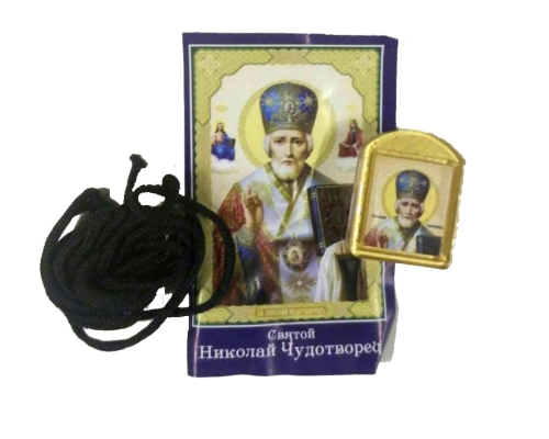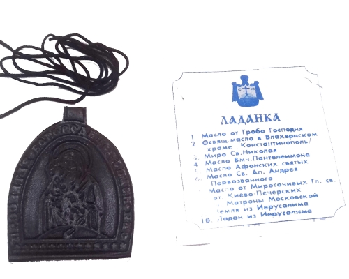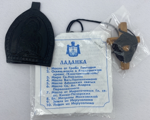 Ладанка четырёхчастная с нитью на КАРАБИНЕ с частицами освященными на мощах Святых.