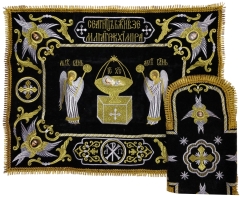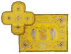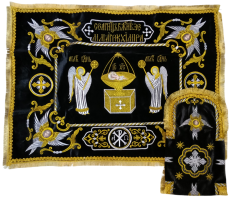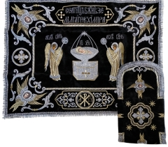 Покровці та воздух з вишивкою "Лілія", з вишитим галуном та іконою "Спаситель"