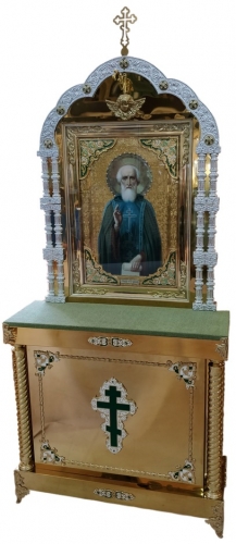 Киот на 3 колоны с иконой преп.Сергия Радонежского - Х3128 - Тумба: