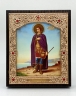 Икона Дмитрия Солунского рамка изготовлена из деревянного основания. Оклад иконы выполнен из пластика с орнаментом, также оклад украшен красными камешками. Печать литографии на бумаге позволяет передать детали изображения с большой точностью и яркостью.