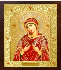 Икона свящ. Николай Чудотворец рамка изготовлена ​​из деревянного основания. Оклад иконы выполнен из пластика с орнаментом, также оклад украшен красными камешками. Печать литографии на бумаге позволяет передать детали изображения с большой точностью и яркостью. Размер:11х13 см