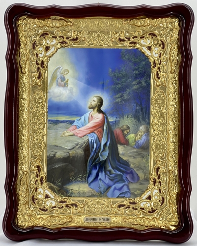 Икона имеет деревянную рамку, которая покрыта лаком, придающим блеск и защищает поверхность от износа. Подрамник изготовлен из пластмассы, и имеет красивый узор, покрывающийся золотистой и цветной краской. Главной характеристикой этой иконы является печатаемая на бумаге литография.