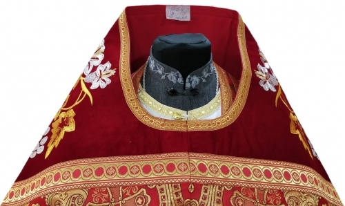 Облачение священника комбинированное из парчи "Греческий крест", с вишитим оплечием, вышивка "Лилия"
