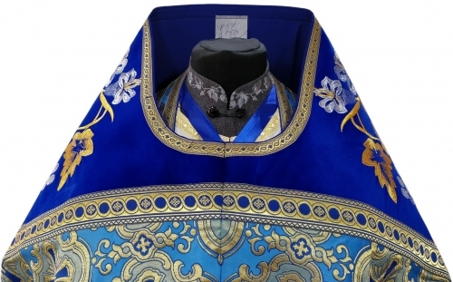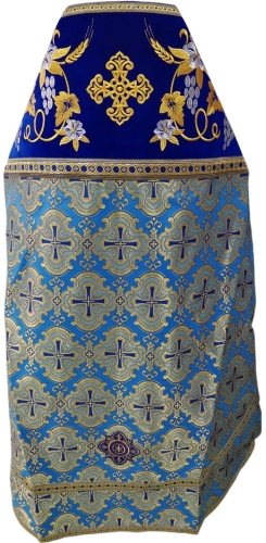 Облачение комбинированное из парчи синего цвета - Х32319 - Ткань"Пасхальный крест"