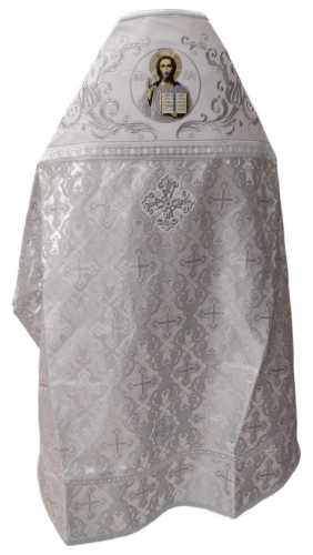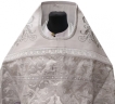 Облачение священника комбинированное, основа из качественной парчовой ткани отечественного производства с двойной металлизацией, верх-вышитый золотой и серебряной нитью на бархате производства Италии, декорирован вышитыми крестами, галуном и бахрамой. В комплект входит: фелон, епитрахиль, поручи, палица, набедренник, пояс и воздух с покровцами.