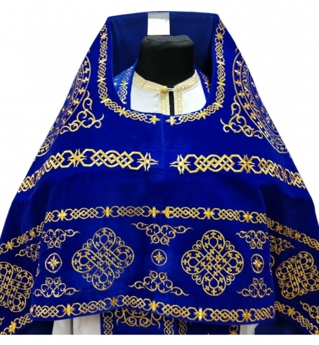 облачение священника, вышитое золотой и серебряной нитью на бархатном производстве Италия. В комплект входит: фелон, епитрахиль, поручи, палица набедренник, пояс и воздух с покровцами.