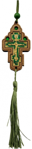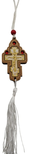 Подвеска "Крест в дереве" белая эмаль бел.к. - Х32541 - Крест 6.8см х3.8см