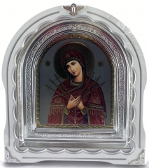 Икона святого Николая Чудотворца рамка иконы изготовлена из древесины, что придает ей красивый вид. На самой деревянной рамке находится орнамент, расписанный золотой краской. Литография на иконе выполнена с использованием золотого и серебряного тиснения на дереве.