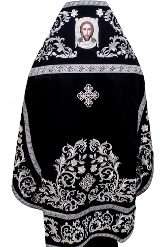 облачение священника, вышитое золотой и серебряной нитью на габардине. В комплект входит: фелон, епитрахиль, поручи, палица, набедренник, пояс и воздух с покровцами.