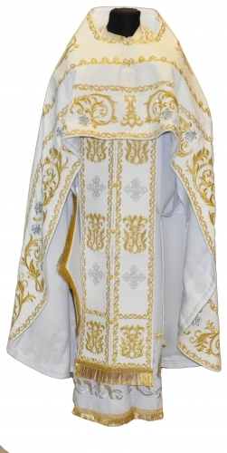 облачение священника, вышитое золотой и серебряной нитью на бархатном производстве Италия. В комплект входит: фелон, епитрахиль, поручи, палица, набедренник, пояс и воздух с покровцами.