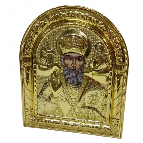 Ікона свт. Ніколая Чудотворця виготовлена з металу за допомогою технології тиснення на станку, що надає їй об'ємності та виразності. Кожна деталь ікони виконана з уважністю та деталізацією. Металева основа надає іконі міцності та довговічності.